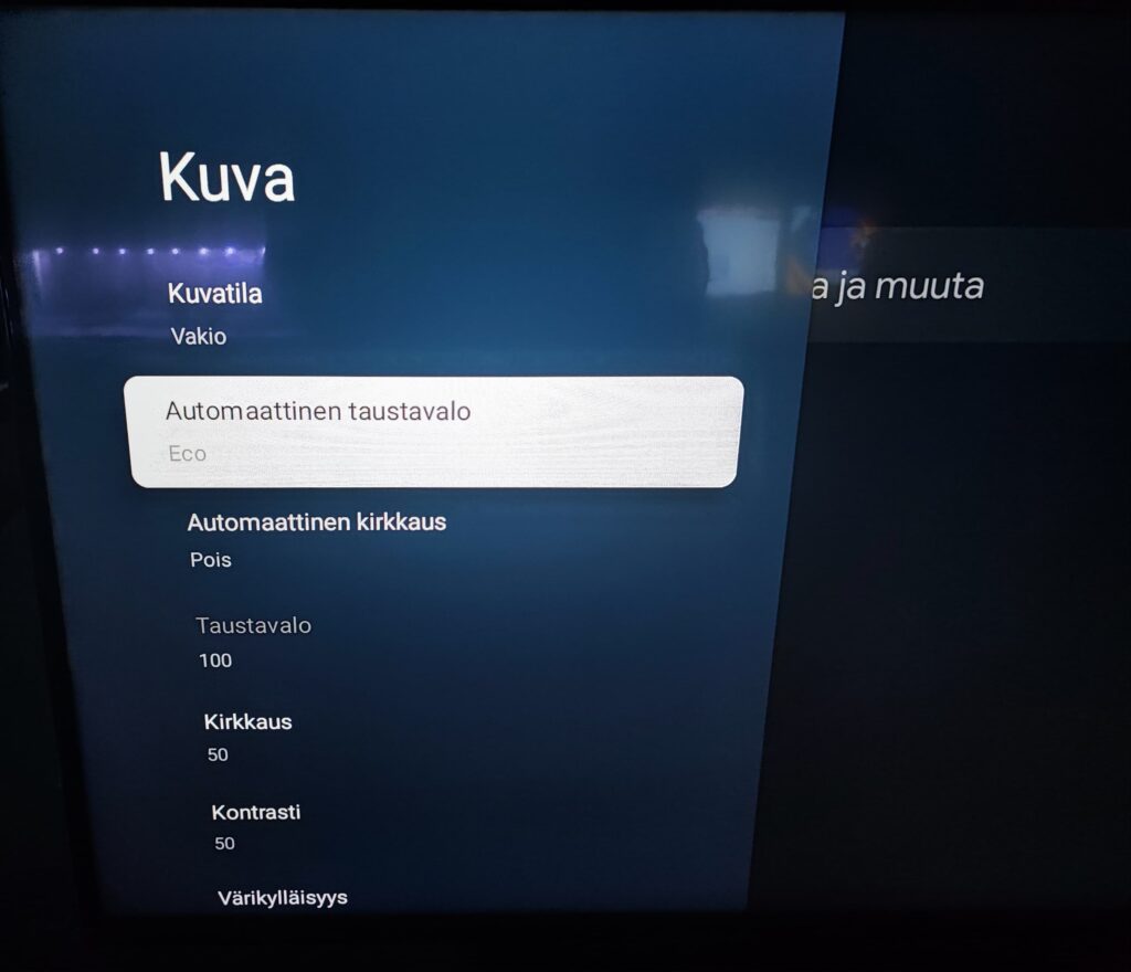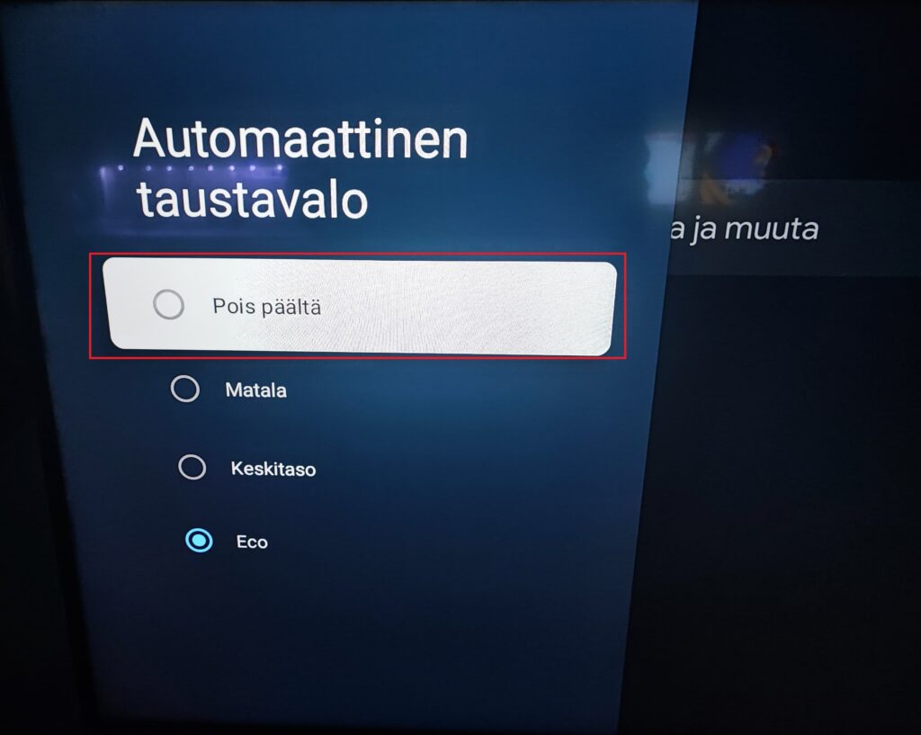 Finlux Google TV-laitteiden automaattinen taustavalon säätö