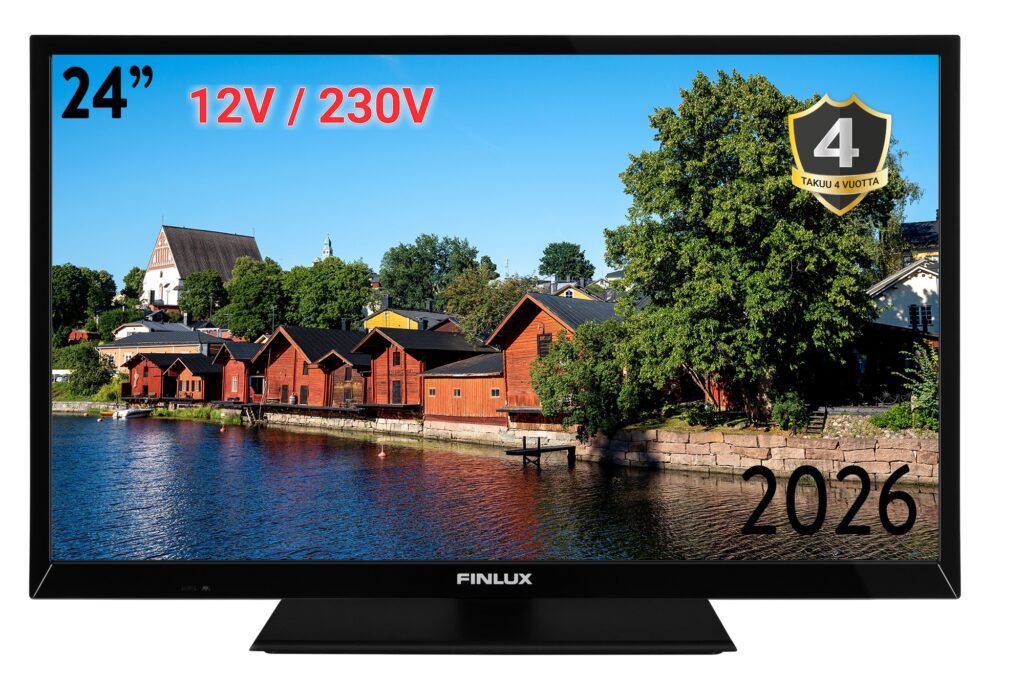 Finlux 24M6.2ECI-12 on 24″ LED TV Antenni- ja kaapelitalouksiin. Television ulkoasu on tyylikäs ja sen käyttö on selkeää helppoa. Televisio tukee 12V sekä 230V käyttöjännitteitäFINLUX