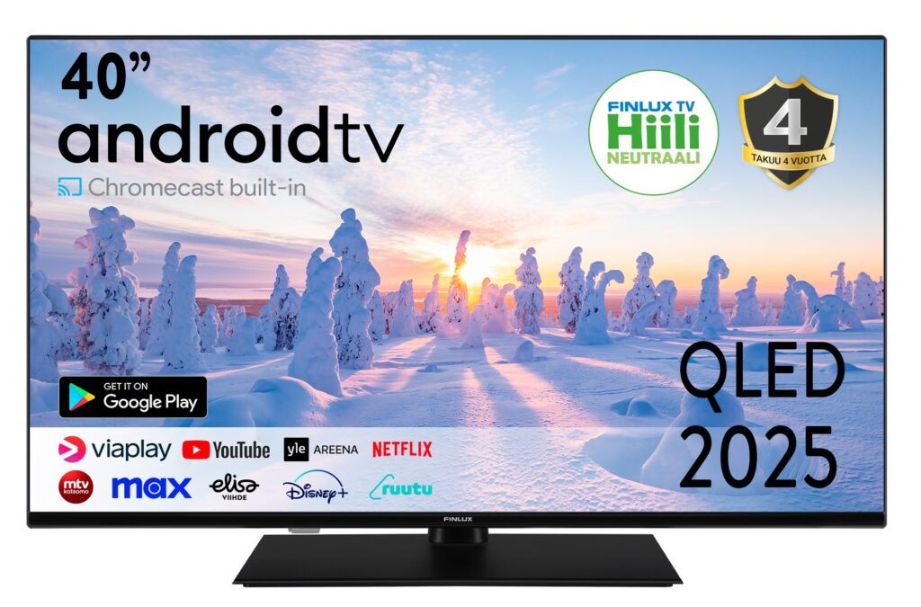 Finlux 40″ G10 QLED Android TV, 40G10.2ACI, tarjoaa uuden sukupolven kuvanlaadun Quantum-Dot teknologiaa hyödyntäen. QLED teknologia tuottaa laajemman sävymaailman, syvemmät kontrastit ja terävämmän kuvan myös