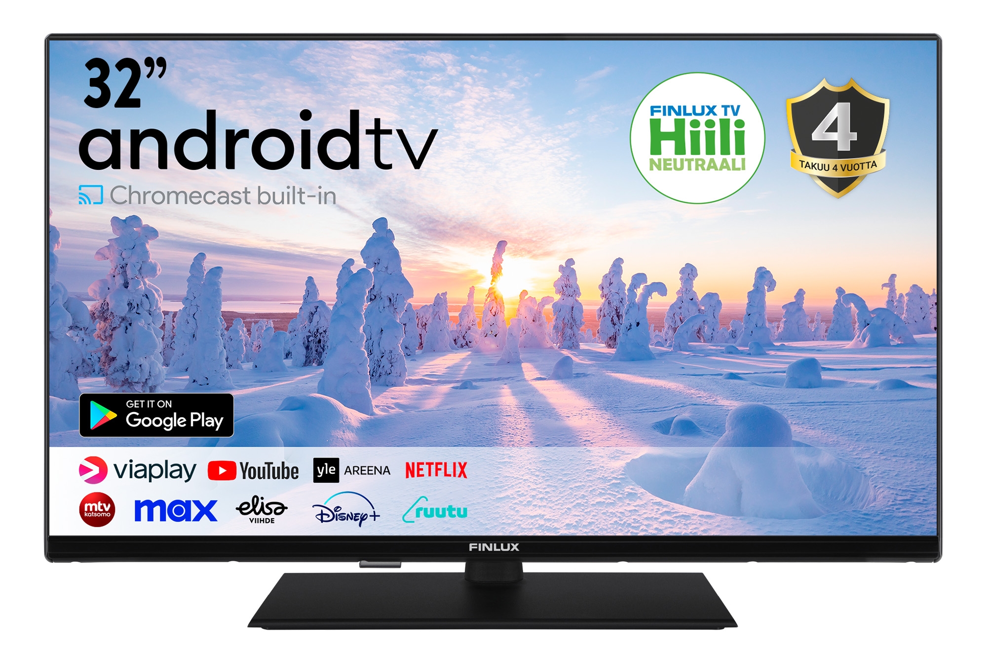 FINLUX 32G8.2ECI on 32″ Smart Android-Televisio, jossa yhdistyvät miellyttävä ja tarkka kuva , moderni design, uusin tekniikka sekä helppokäyttöisyys ja huima 4 vuoden takuu!